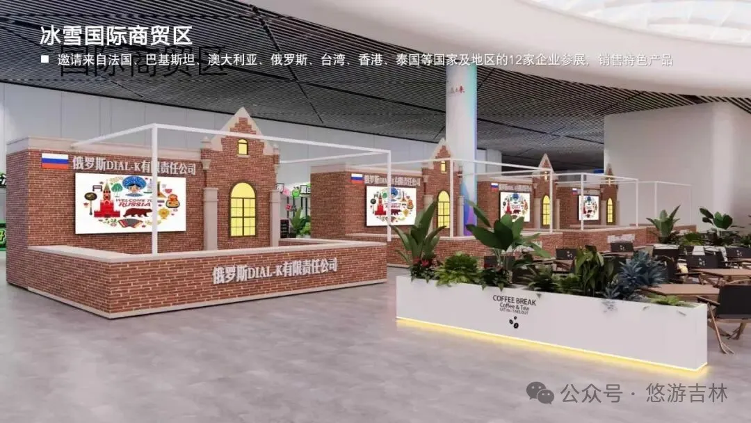 ?國際商貿展區:來自法國、巴基斯坦、澳大利亞、俄羅斯、臺灣、香港、泰國等國家及地區的12家企業參展,帶來純正的異國冰雪商品與文化。